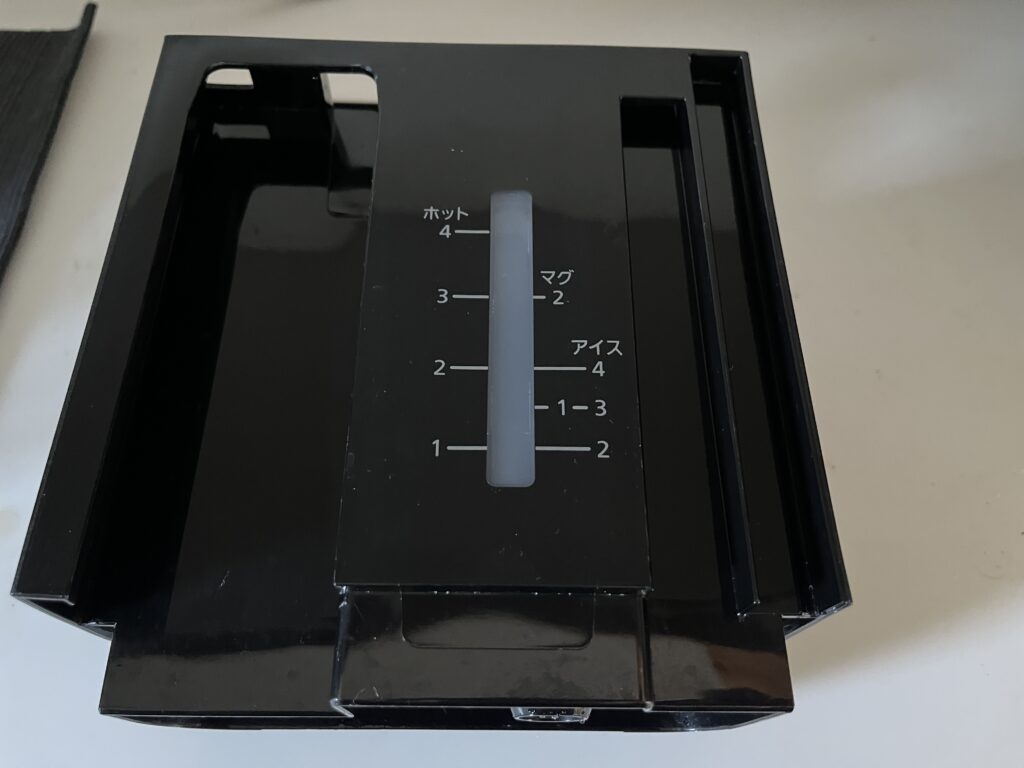 水タンクには「ホット」「マグカップ」「アイスコーヒー」のメモリが書かれており、慣れればなんてことありませんが最初は「どこまで水を入れればいいの?」と混乱しました…